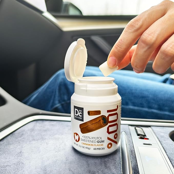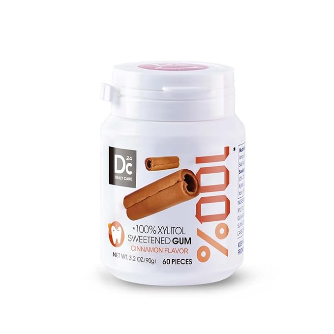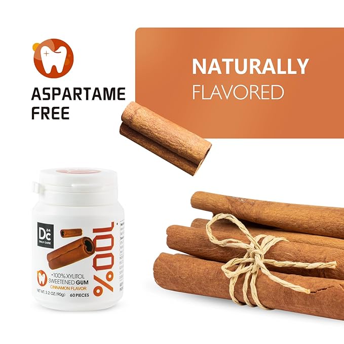 DC24 DAILY CARE 100% Xylitol Gum, No Aspartame, Sugar Free Chewing Gum, Natural Cinnamon Flavor, Gluten Free, Vegan, 60 Pieces, Pack of 1