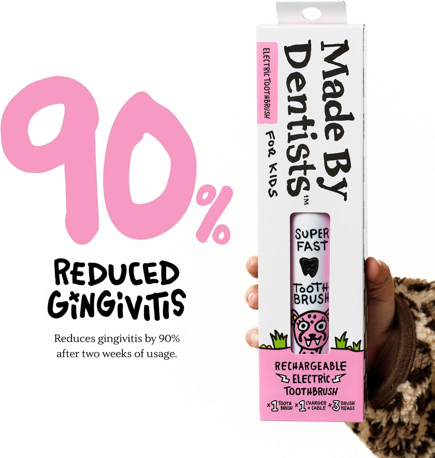 - FUN CHEETAH-INSPIRED DESIGN – Make brushing fun and stress-free with a playful cheetah-themed kids’ electric toothbrush. Designed to excite toddlers and children, it gently cleans little teeth and encourages healthy daily habits.