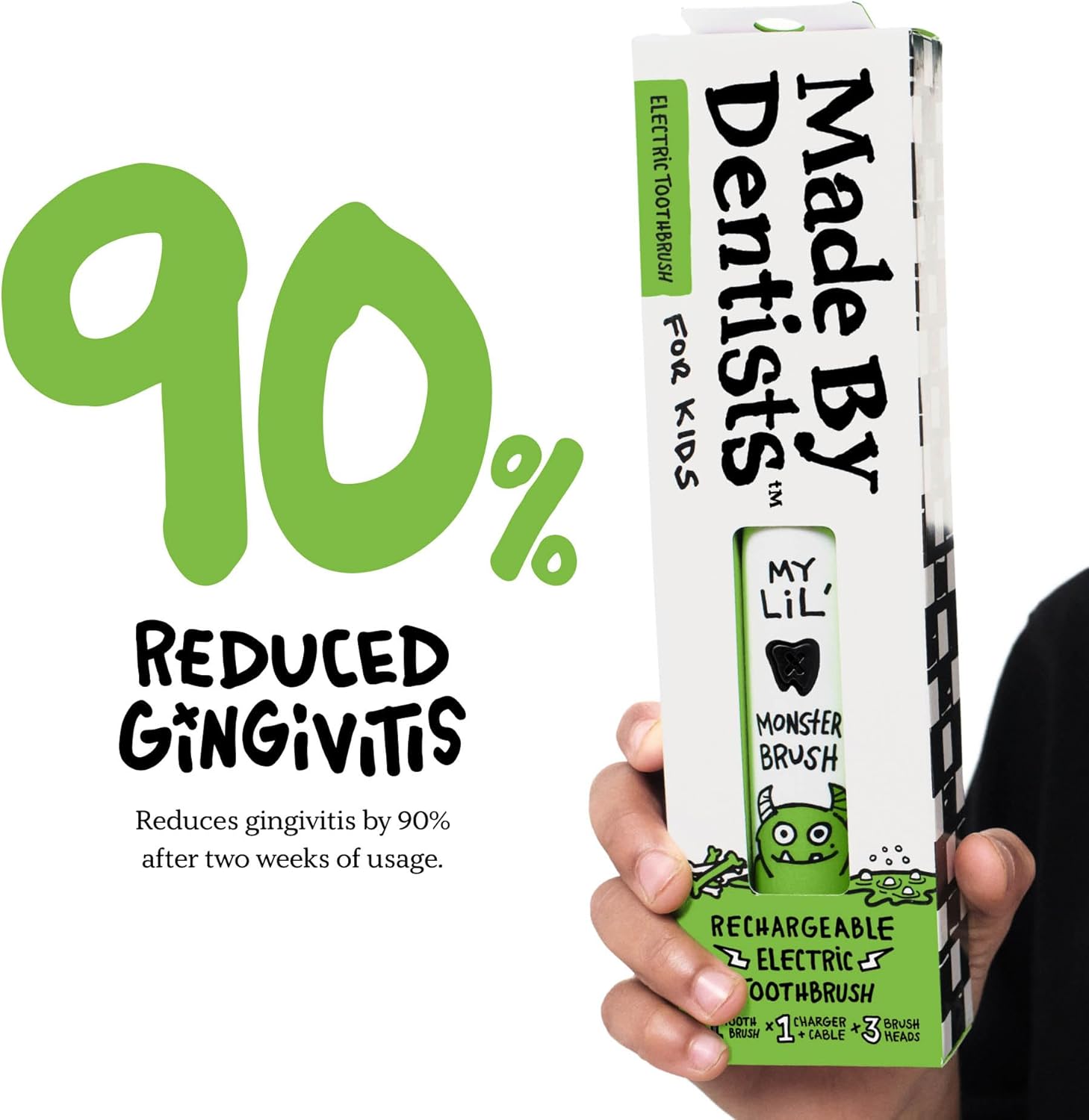 Made by Dentists Kids Electric Toothbrush - Rechargeable Vibrating Toothbrush with Timer, Includes 6 Replacement Heads, Halloween Gifts for Kids, Girls and Boys, Kid & Toddlers Age 2+, Monster