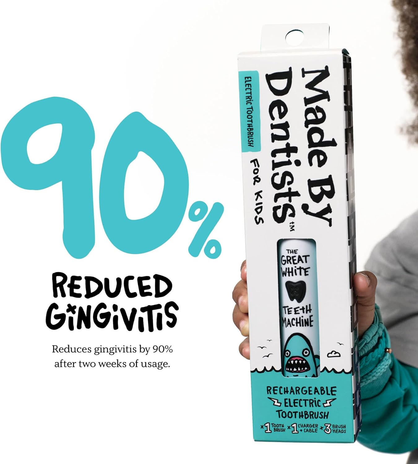 Made by Dentists Kids Electric Toothbrush - Rechargeable Vibrating Toothbrush with Timer, Includes 6 Replacement Heads, Halloween Gifts for Kids, Girls and Boys, Kid & Toddlers Age 2+, Shark