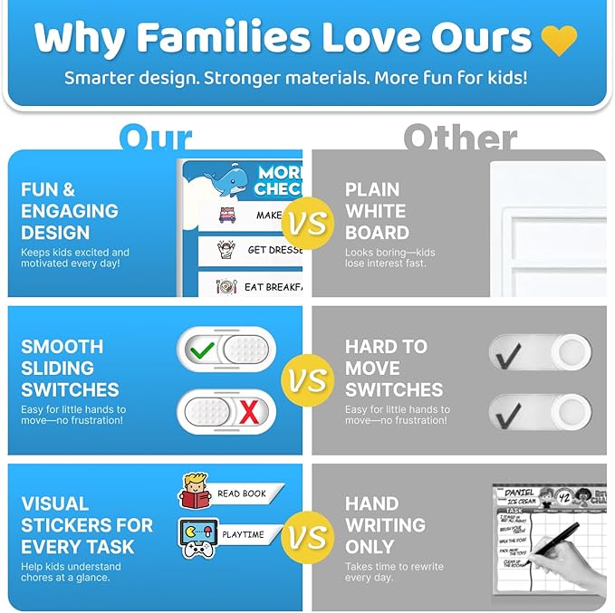 - Upgraded Slider & Magnetic Board - Durable magnetic chore chart with smooth-glide sliders lets kids easily track tasks, fostering independence