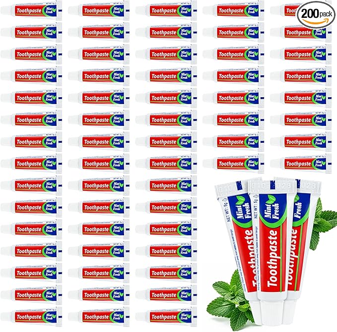 200 Tubes Bulk Travel Size Mini Toothpaste, 0.176oz Disposable Mint Flavor Pocket Teeth Paste Small Essential Toothpaste for Travel, Home/Hotel/Guests/Charity/Homeless/Camping Oral Care (Single Use)