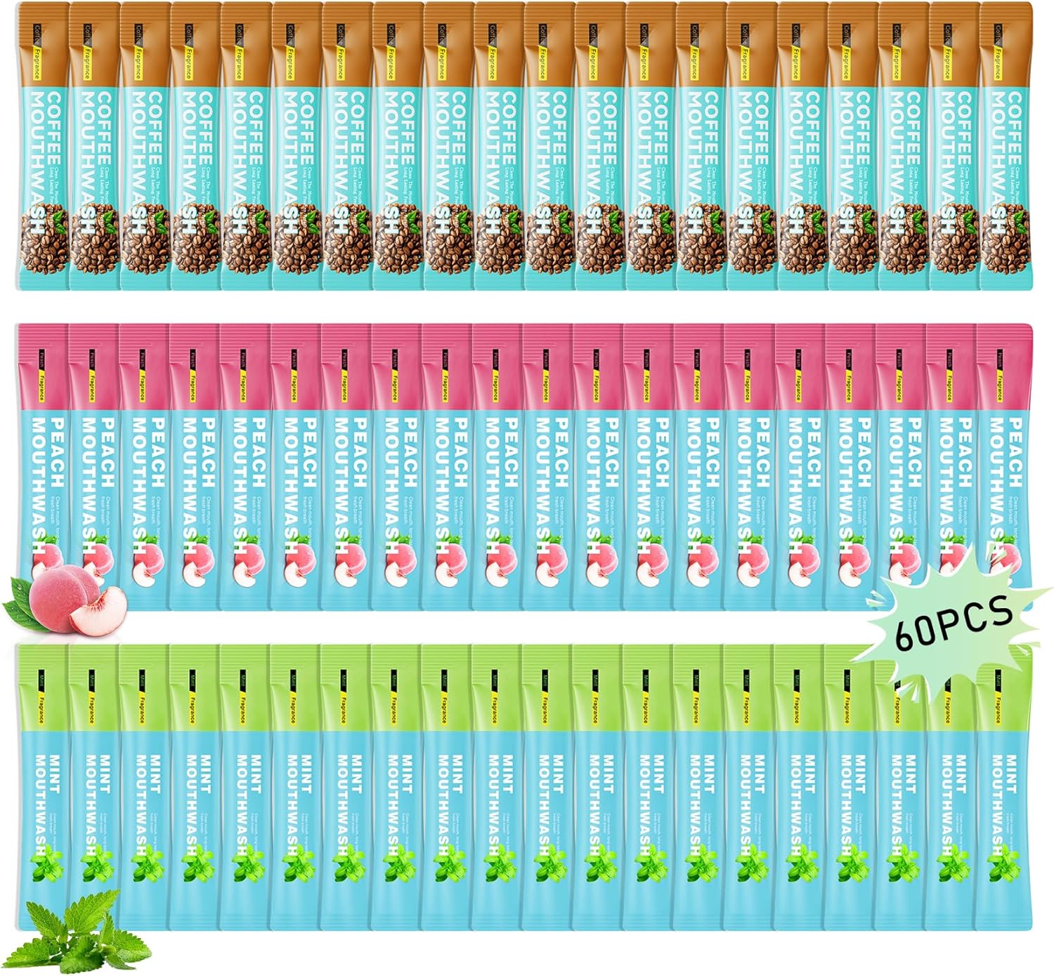 3 Flavors Mini Mouthwash Travel Size, Portable Individual Travel Mouth Wash for Fresh Breath, Refreshing Long Lasting Gentle Oral Care Mouthwash Packs(Pack of 60) Set A