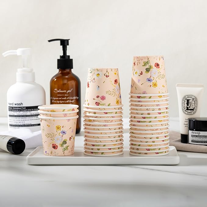 - Value Pack: 150 pack 3 oz floral mini paper cups, enough for your daily needs, perfect for bathroom cups, espresso cups, party cups, drink cups, medicine cups and small mouthwash cups