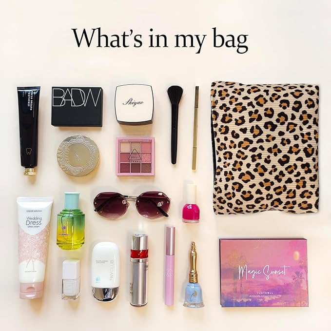 STARDW Leopard Makeup Bag Organizer Cosmetic Bags for Women and Girls,Travel Toiletry Bag Large Capacity Canvas Makeup Zipper Pouch, Purse Organizer Pouches