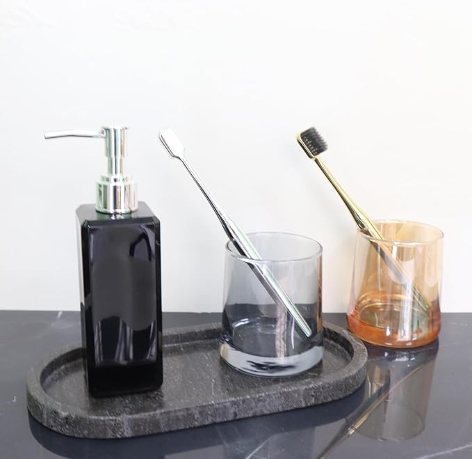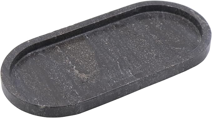 - Vanity tray 12 x 5 inches is suitable for various scenarios.It is the perfect size to place on a bathroom vanity to store hand soap, toiletries and hand towels. Because it is natural marble, the texture of each stone is different and the pattern on the tray you buy will be different from the picture
