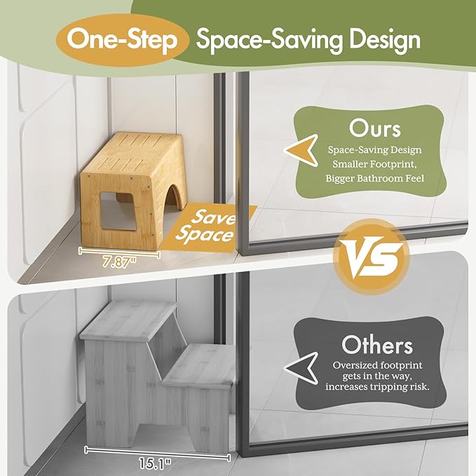- Fostering Independence in Children: This one-step stool offers optimal support for growing toddlers, from potty training to brushing teeth, washing hands, reading in the nursery, and reaching high places such as the bathroom sink or kitchen counter that require assistance. It nurtures their independence and self-care abilities.