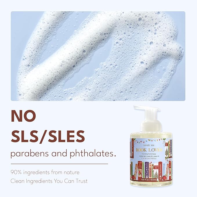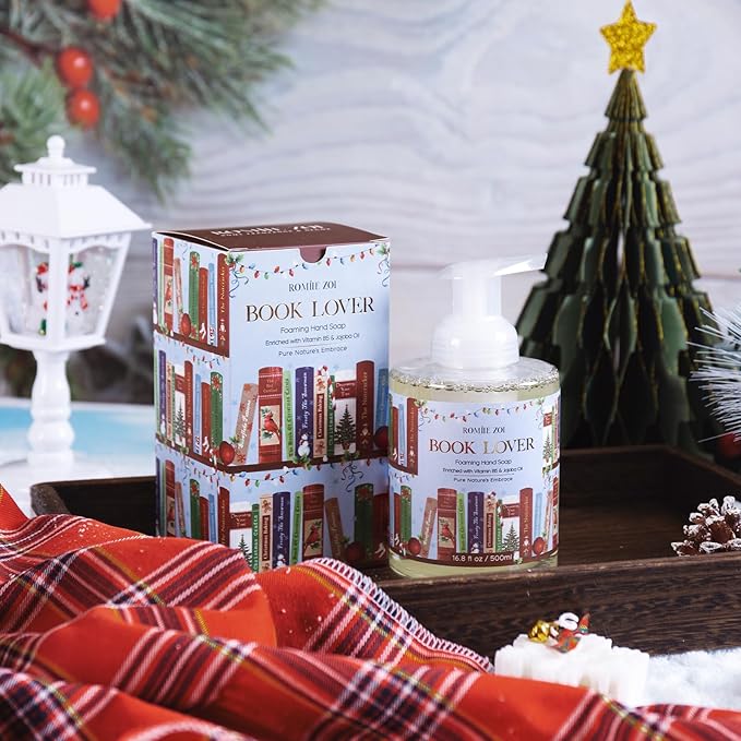ROMIIE ZOI Christmas Foaming Hand Soap with Gift Box- Book Lover Design, Floral&Fruity Scented- Holiday Soap Gift for Bathroom Winter Home Decor, Stocking Stuffer- 500ml / 16.8oz