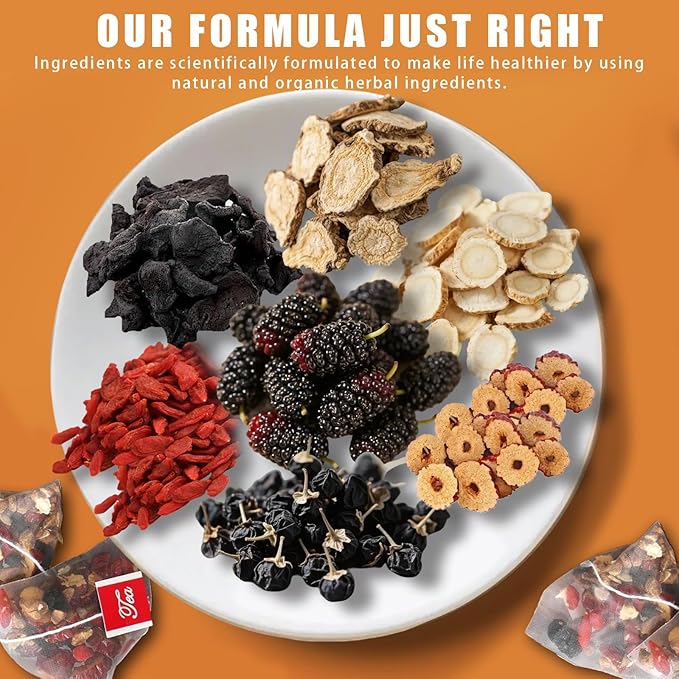 - Harnessing 7 Traditional Chinese Herbs: UsingcarefullyselectedReddates,wolfberries,polygonatumsibiricum,blackwolfberries,mulberries,maca artificially -cultivated ginseng 5years old or less, etc. Slow-sun-dried with zero additives to preserve plant-based wellness.