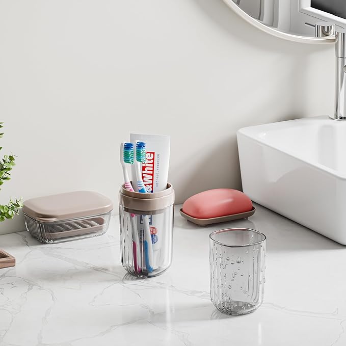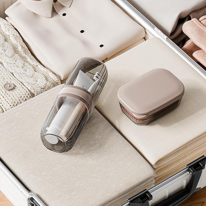 - Portable Toothbrush and Soap Case: This cute travel toothbrush holder and soap case is small, doesn't take up too much space, and can be carried around for easy travel. The soap box contains a drain soap dish to prevent soap bubbles from softening in the water