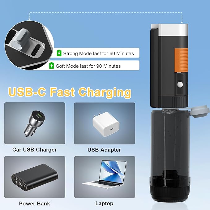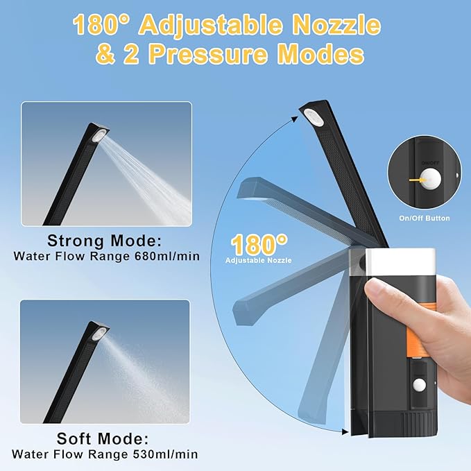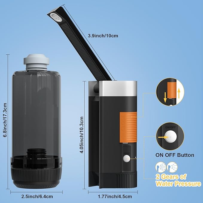 - RECHARGEABLE POWER: This portable bidet Built-in 1100 mAH battery provides multiple uses on a single charge, eliminating the need for constant battery replacements