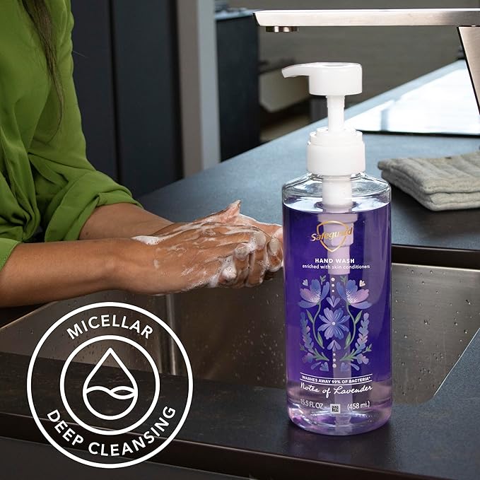 Safeguard Liquid Hand Soap, Micellar Deep Cleansing, Washes Away 99% Bacteria, Made with Natural Moisturizers, Enriched with Skin Conditioners, Coconut & Lavender Scent Twin Pack, 15.5 oz (Pack of 2)