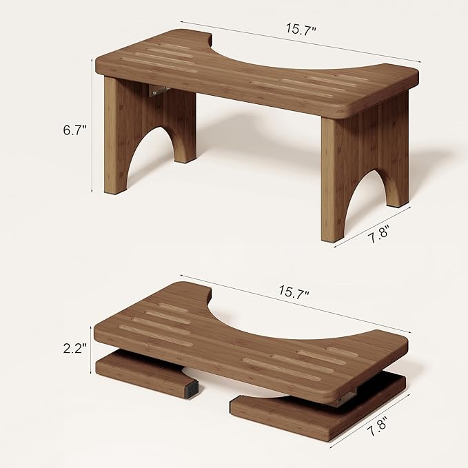 Toilet Stool Poop Stool, Collapsible Squatting Potty for Adults & Kids, Wooden Bamboo Step Stool for Bathroom, 7 Inch Height Foldable Pooping Toilet Foot Stool, Brown