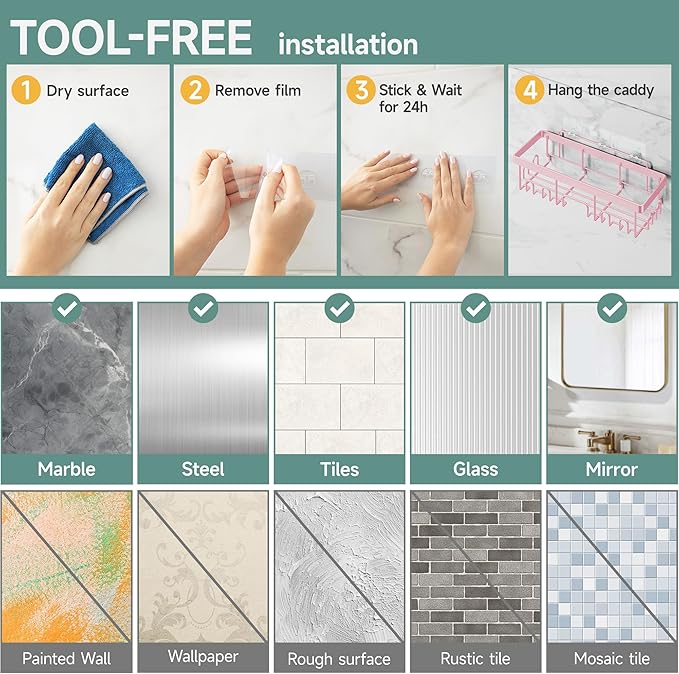 - Versatile for Family Use: Perfect for family bathrooms, this set adapts to various needs, making it easy to organize shampoos, soaps, and more; enhancing shower convenience for everyone