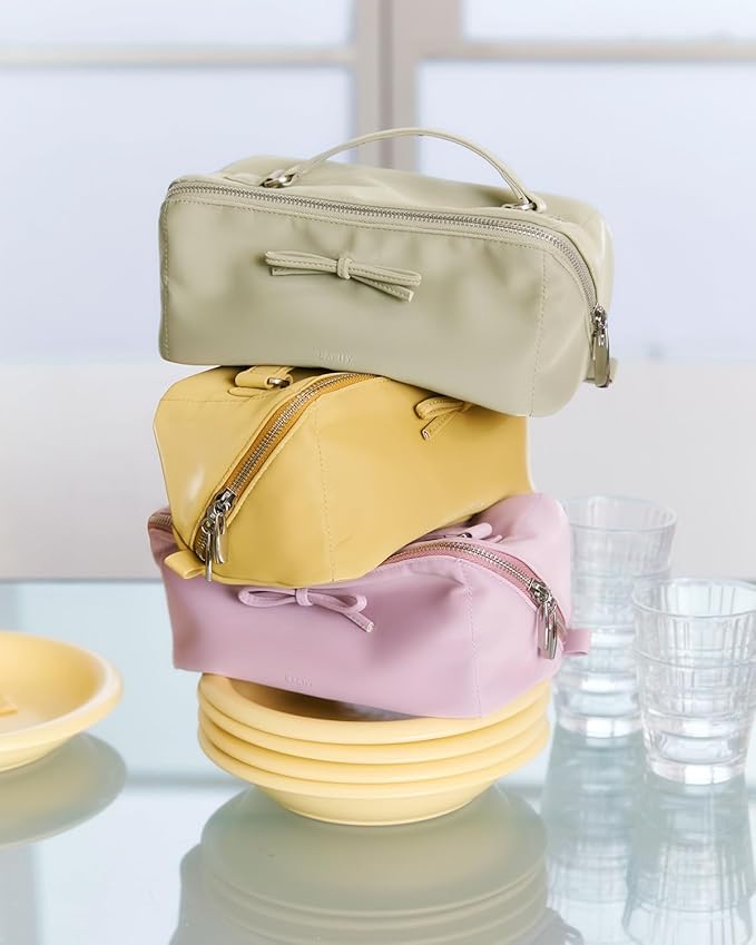 - Elegant Pearl-Sheen Materials: Made from waterproof PU with a silky pearl-like sheen that’s smooth to the touch and easy to clean, paired with a durable polyester lining. The clear, waterproof brush compartment keeps your tools tidy and visible, making it a stylish and reliable toiletry bag.