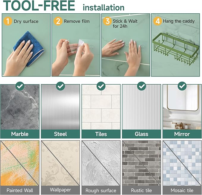 - Versatile for Family Use: Perfect for family bathrooms, this set adapts to various needs, making it easy to organize shampoos, soaps, and more; enhancing shower convenience for everyone