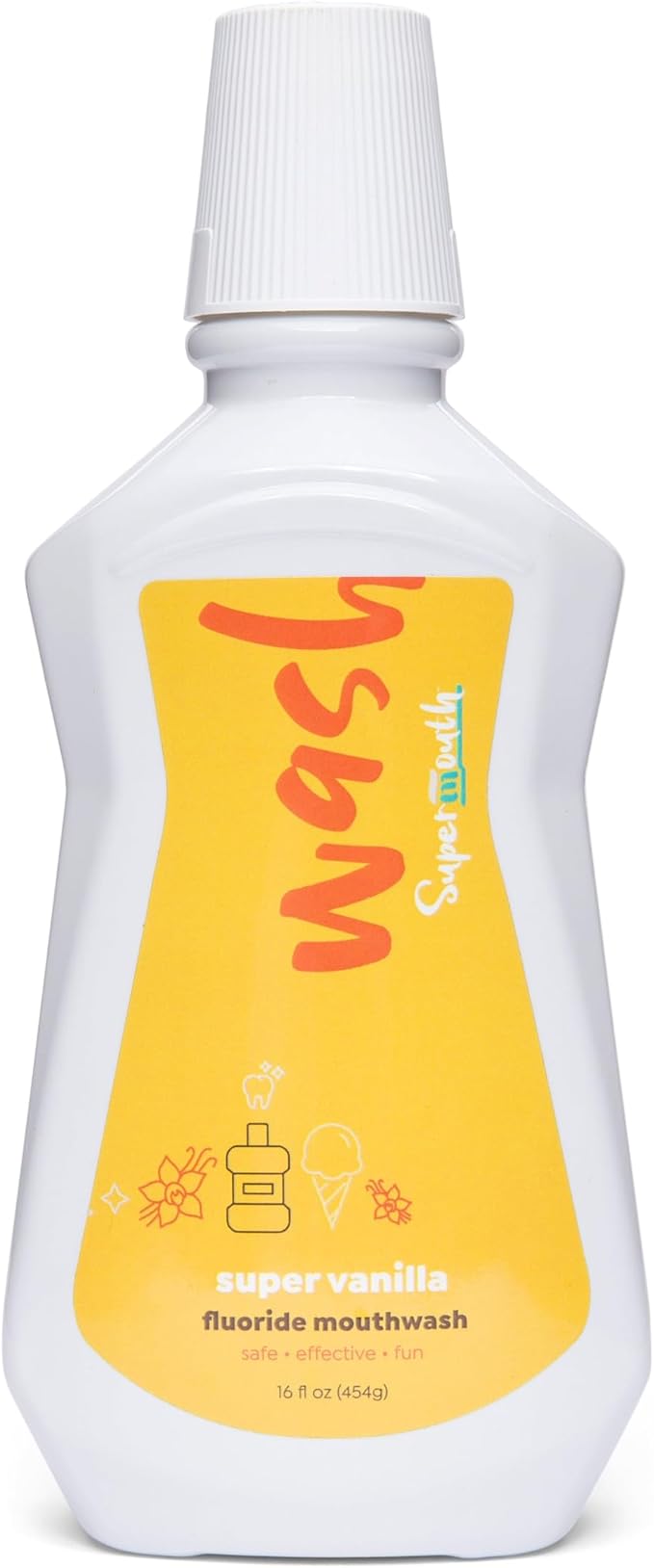 - Alkaline pH and Xylitol for Oral Balance: With a pH of 8.5, SuperMouth Fluoride Mouthwash combats acids and helps maintain a healthy oral ecosystem. Infused with xylitol, it enhances moisture retention and further supports a balanced oral environment for comprehensive care. Available in four family-favorite flavors—chocolate, vanilla, strawberry, and mint.