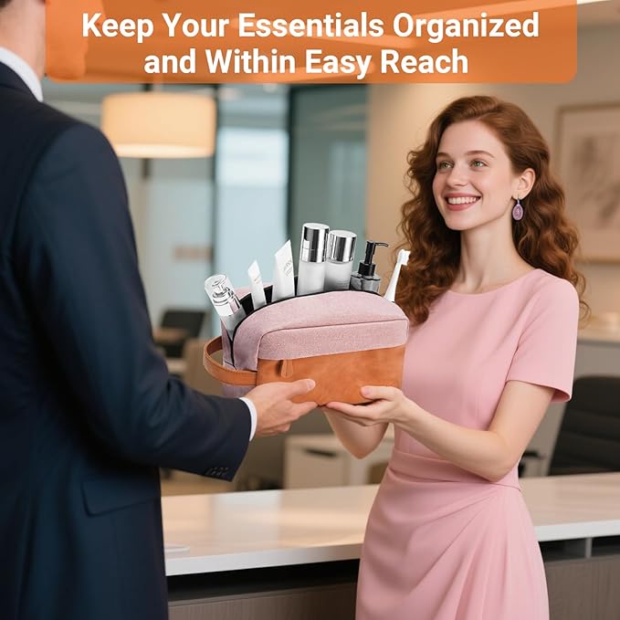 - Gender-Neutral Colors & Modern Style: Travel bag for toiletries available in gender-neutral colors like navy blue and classic brown, it combines matte PU leather with Oxford fabric. The vegan leather handle and smooth zipper add refined functionality.This Elviros Travel Toiletry Bag is perfect as a gift for men and women,whether as a gift for holidays or for personal use!