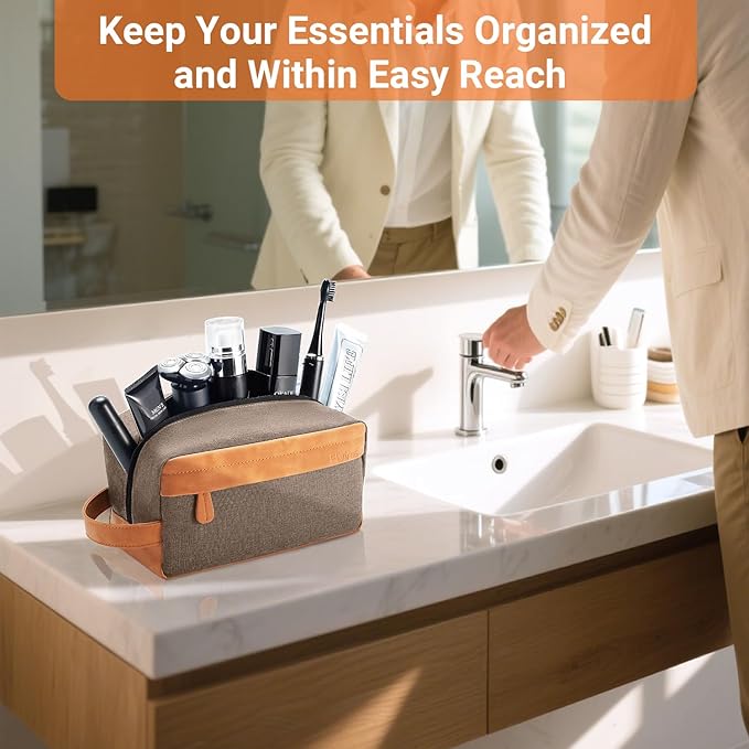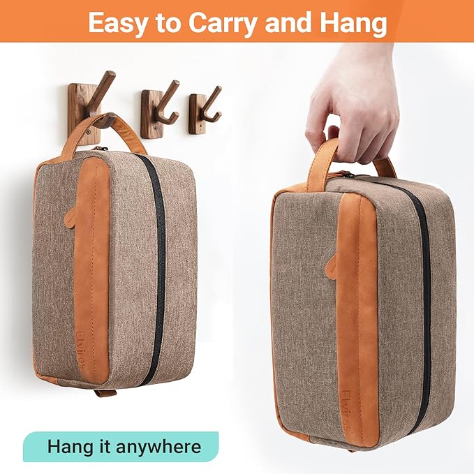 - Gender-Neutral Colors & Modern Style: Travel bag for toiletries available in gender-neutral colors like navy blue and classic brown, it combines matte PU leather with Oxford fabric. The vegan leather handle and smooth zipper add refined functionality.This Elviros Travel Toiletry Bag is perfect as a gift for men and women,whether as a gift for holidays or for personal use!