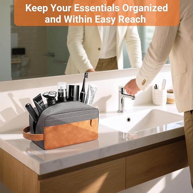 - Gender-Neutral Colors & Modern Style: Travel bag for toiletries available in gender-neutral colors like navy blue and classic brown, it combines matte PU leather with Oxford fabric. The vegan leather handle and smooth zipper add refined functionality.This Elviros Travel Toiletry Bag is perfect as a gift for men and women,whether as a gift for holidays or for personal use!