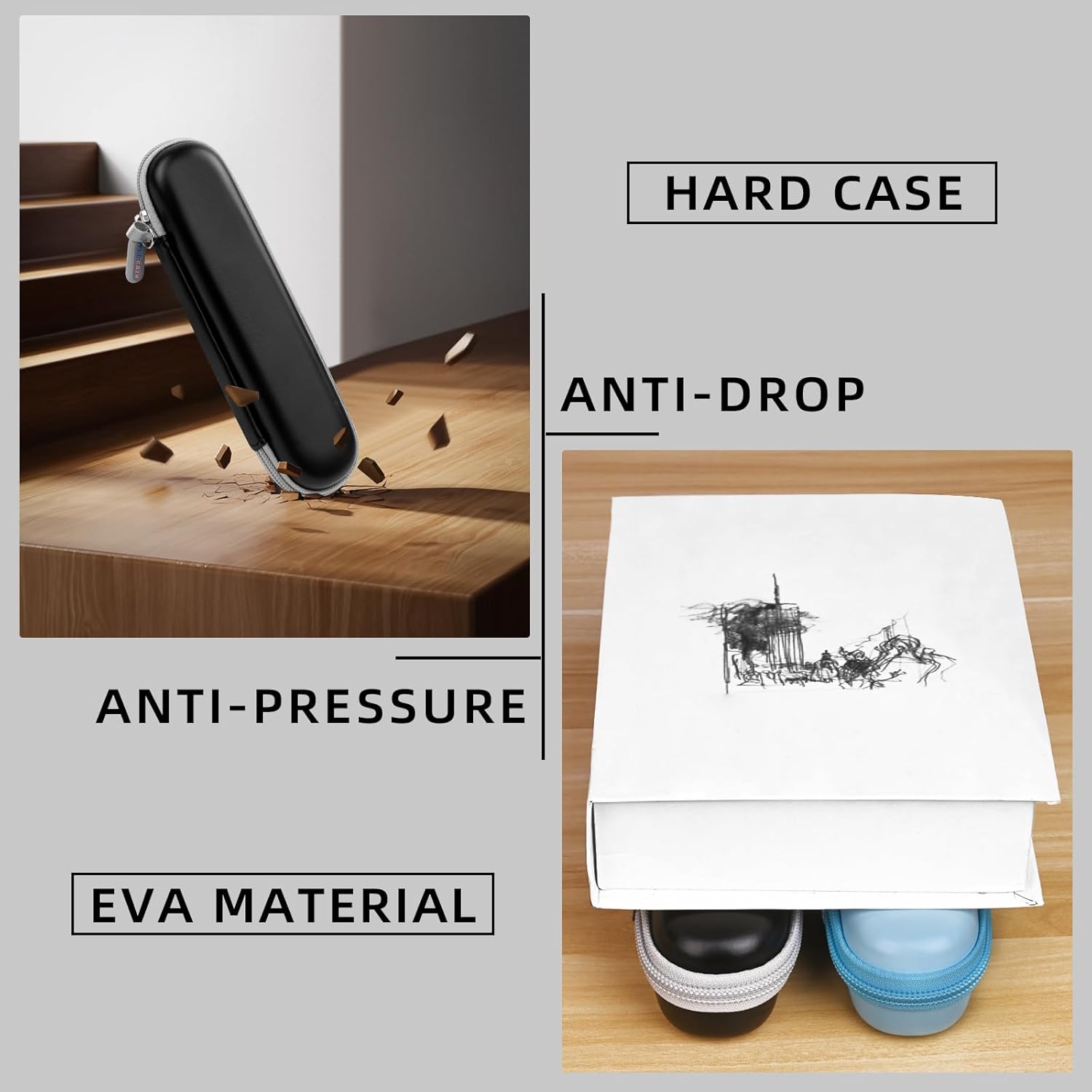 - đȘ„ăEVA SHELL CASEăHard EVA material holds shell shape and acts as a support, the case falls to the ground can protect the toothbrush, shock absorption, and heavy pressure on the case will not be deformed, to avoid the toothbrush is crushed.