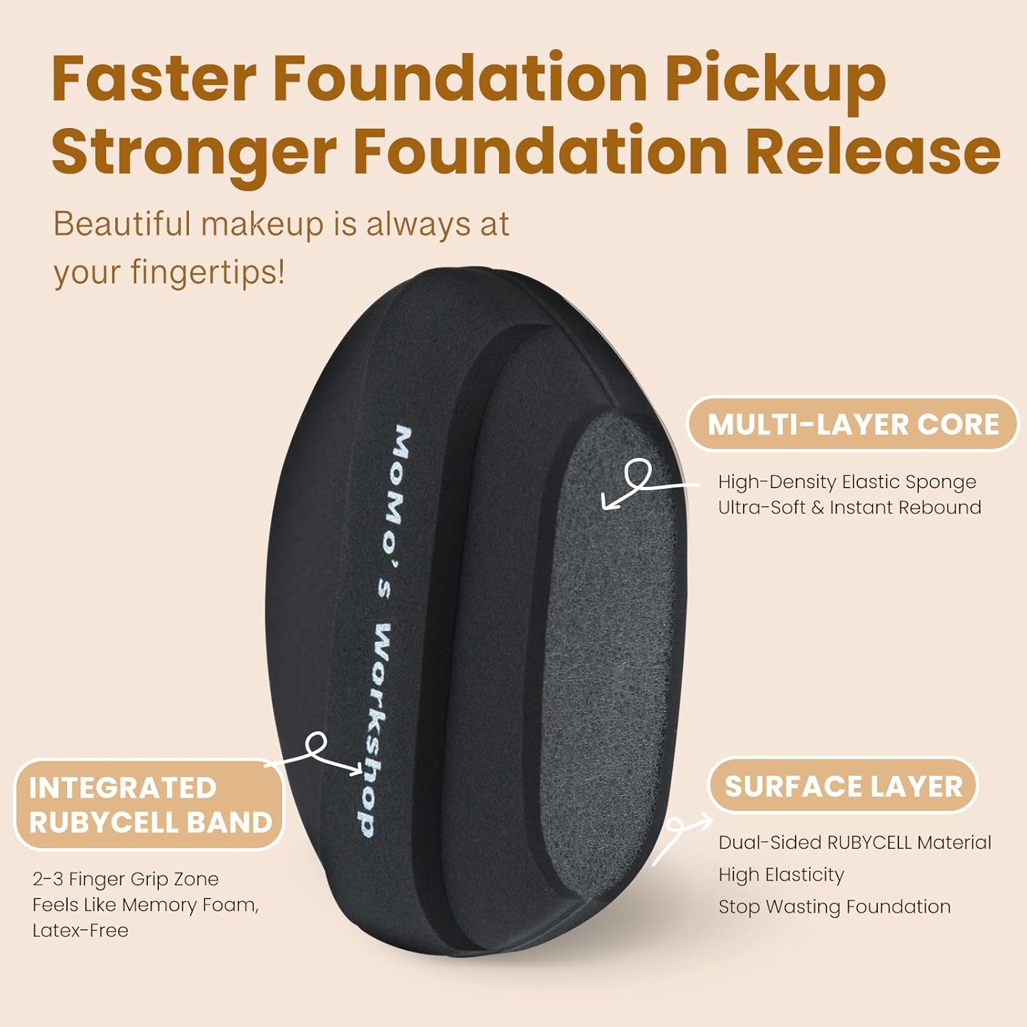 - 【Ultra-Soft & Bouncy Makeup Sponge Puff】Made with high-quality Rubycell foam, this makeup sponge is ultra-soft and bouncy, providing comfortable application without absorbing excess product.