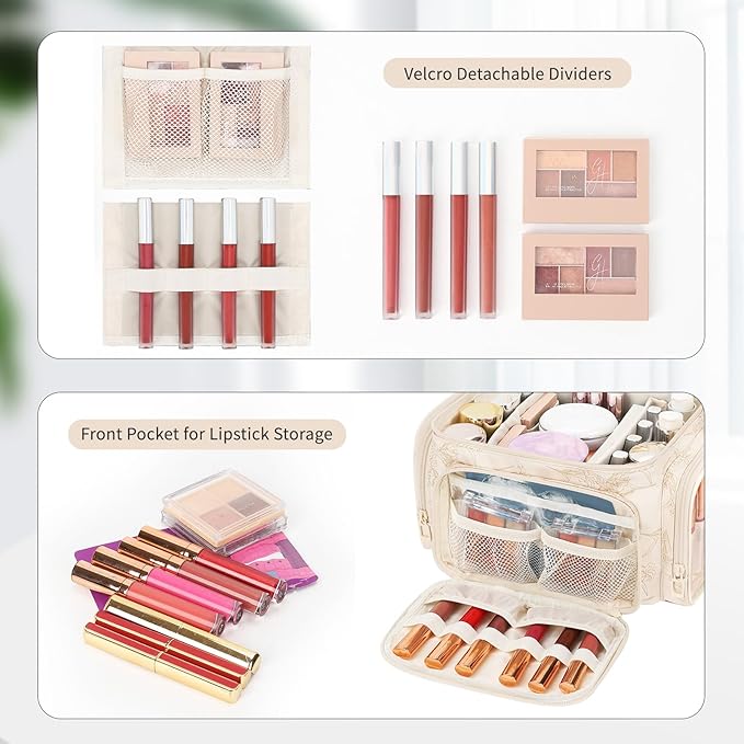 - Large Capacity Cosmetic Bag - Our makeup bag is spacious and deep enough to hold bottles vertically. With two removable dividers to better organize all your cosmetics and personal belongings, you can also adjust the space as needed!