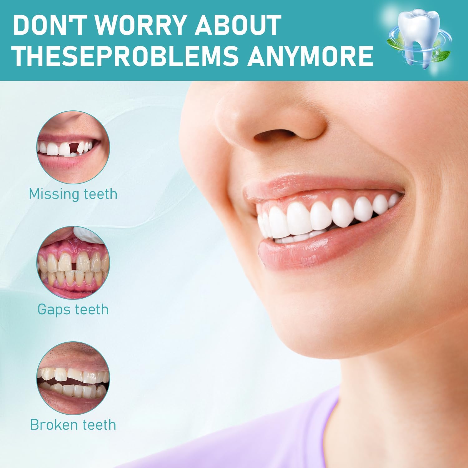 - 【High-quality materials】The kit is made of high-quality resin and silicone materials for long-term use, ensuring long-lasting durability, making it tight and comfortable, and feeling like a real part of your mouth