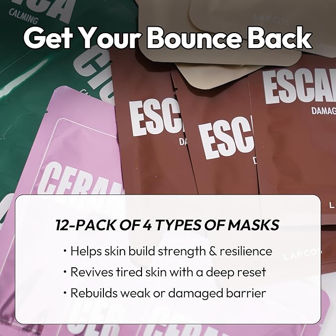 - COMPLETE SKIN CARE SET – VARIETY PACK. This carefully curated 12-face mask set includes our most-loved Escargot, Cica, Ceramide, and Honey facial masks to boost barriers and rejuvenate skin. Each sheet is designed to provide targeted care, whether you’re looking to hydrate, calm, or restore.