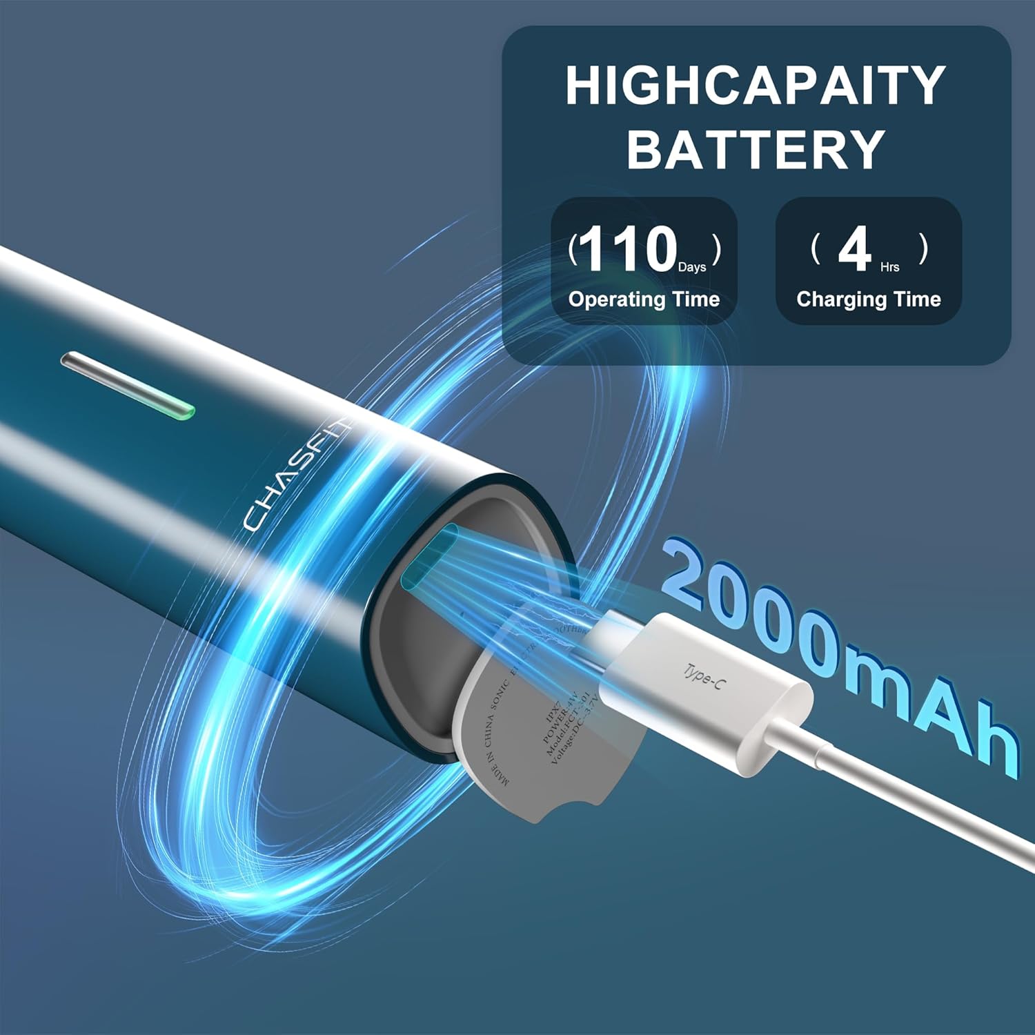 - Long-Lasting Battery – Equipped with a 2000mAh battery, a single charge lasts up to 110 days (Whitening Mode (Green) – 30 days; Soft Mode (Blue) – 60 days; Gum Mode – [duration not specified]). It also comes with a travel-friendly toothbrush pouch and a brush head storage case, ensuring worry-free travel anytime, anywhere.