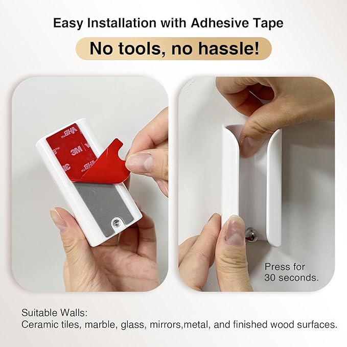 - [Easy Installation] The electric toothbrush holder can be installed in minutes using strong adhesive tape. Just peel, stick, and enjoy a hassle-free setup.