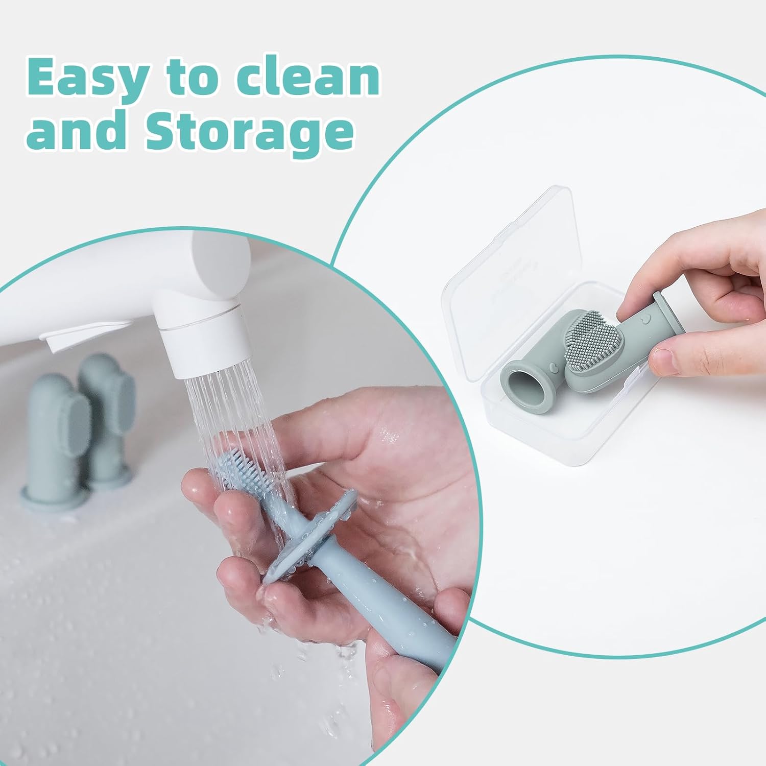 - Versatile Dual-Sided Finger Toothbrush:Includes two baby finger toothbrush, each featuring soft bristles on one side and textured bumps on the other—perfect for cleaning teeth, massaging gums, and wiping the tongue. Comes with a PP storage case to keep them clean and organized.
