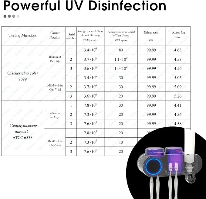 - All-in-One Multifunctional Design: More than a UV toothbrush holder, it includes 2 stylish mouthwash cups and a toothpaste dispenser for both adults and kids (easy to disassemble and clean). Holds 4 electric toothbrushes or 2 toothbrushes plus 1 razor simultaneously, perfect for families or small spaces.