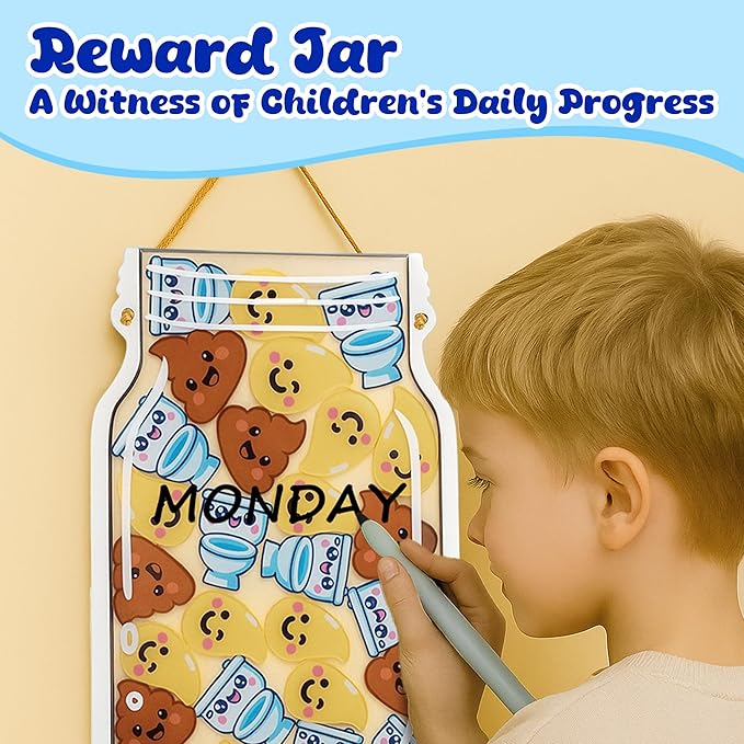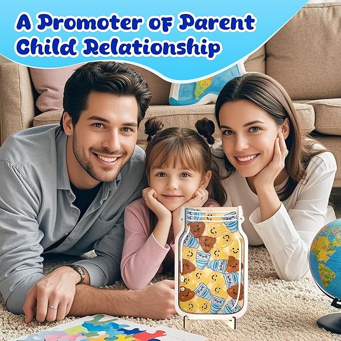- Motivational Tool with Fun Design: The reward jar uses fun poop, pee and toilet tokens to turn potty training into a gamified experience. When children successfully use the toilet, they can throw a token into the jar, creating an instant feedback loop that fosters a sense of accomplishment. Kids gradually associate toileting with achievement, making it a natural habit