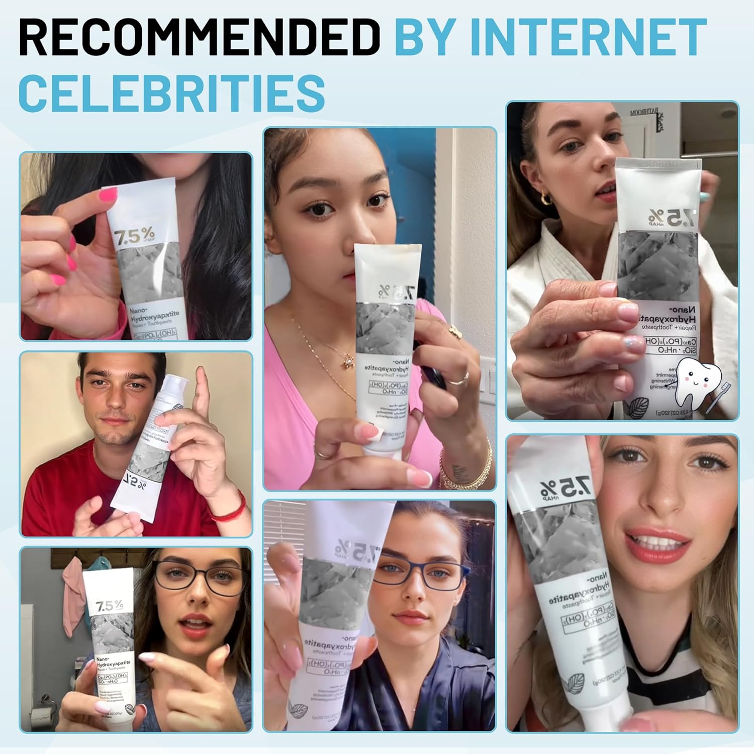 - šššš£ šš”šš šš š£š„š¢š§ššš§šš¢š”: This toothpaste contains 7.5% Nano-Hydroxyapatite, the same mineral found in teeth, Effectively repairs and fortify tooth enamel around the clock. Reduces the risk of gingivitis, bleeding gums, cavities and corrosion, protecting your teeath from daily wear and tear.
