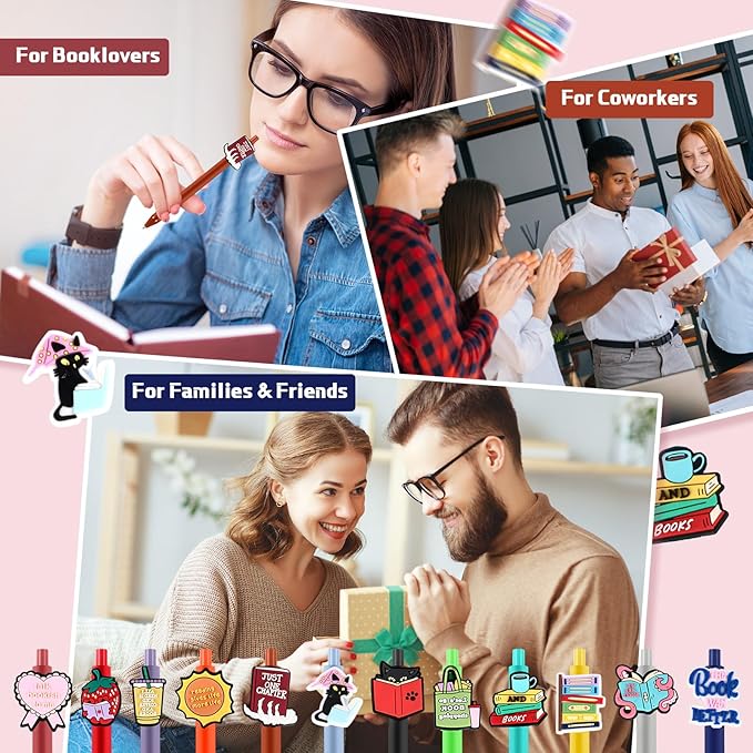 12 Set Book Lover Gifts Book Club Sticky Note Bookish Ballpoint Pens Reading Gifts Ideas for Reader Librarians Literary Lover Bookworms Christmas Appreciation Birthday Party Accessories