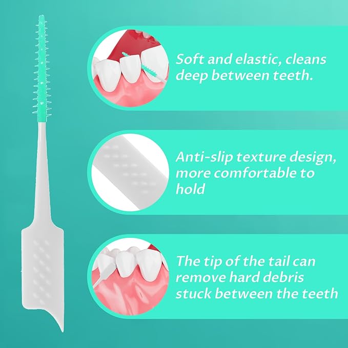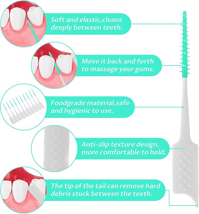 - 【High-quality Material】The dental floss brush head is carefully made of high-quality silicone material, picks for teeth brings a gentle cleaning experience. The soft bristles can effectively remove food debris and plaque between teeth to protect your dental health