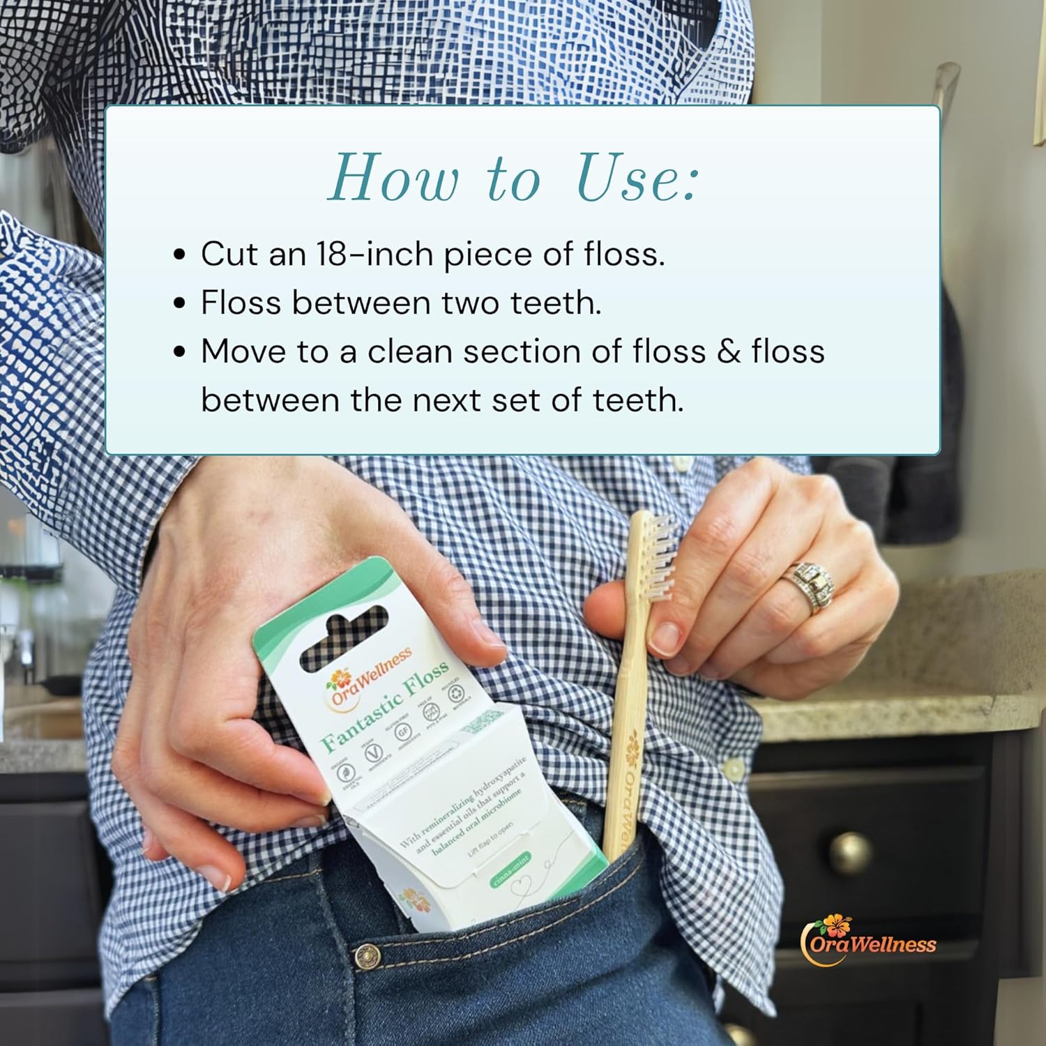 - NATURAL ESSENTIAL OILS of peppermint, cinnamon, and clove soothe the mouth. OraWellness floss is gluten free, vegan, PFAS free, PTFE free, eco friendly, and safe for everyday use.