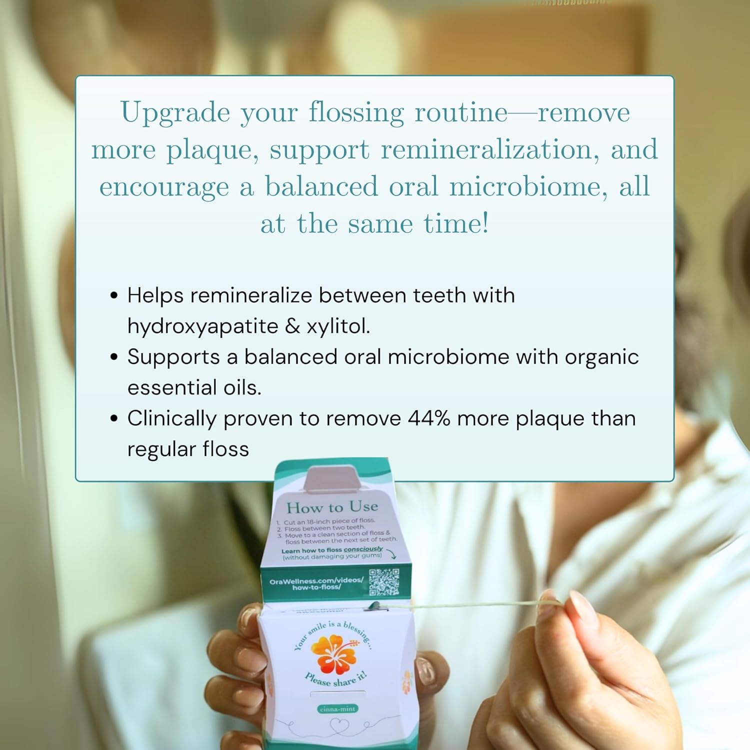 OraWellness Fantastic Floss, Waxed Dental Floss with Hydroxyapatite for Tooth & Gum Repair, Shred Resistant, Gentle & Expanding Alternative to Floss Picks, Pack of 2