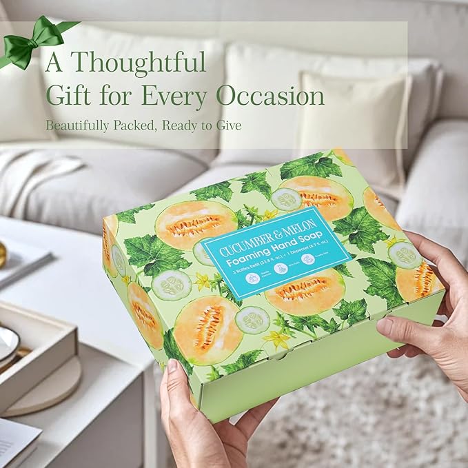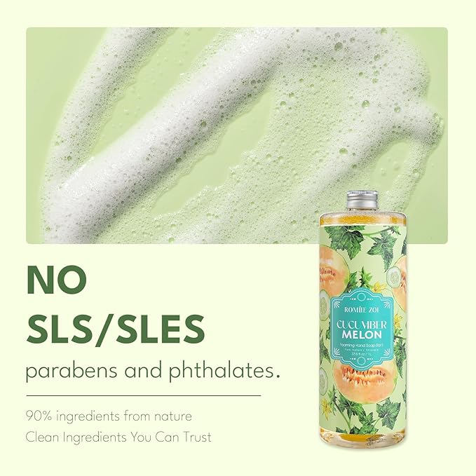ROMIIE ZOI Natural Cucumber&Melon Foaming Hand Soap Refills 3-Pack (33.8 Fl Oz Each) with Dispenser - Plant-Based, Non-Toxic, Large Volume for Kitchen, Bathroom - Great Value Gift Set for Housewarming