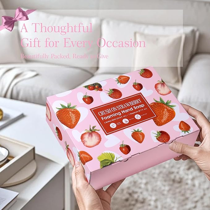 - 【Sweet Strawberry Aroma】Infused with the fresh, fruity fragrance of ripe strawberries, this sweet strawberry hand soap fills your hands with a juicy berry scent that lingers delightfully after every wash.