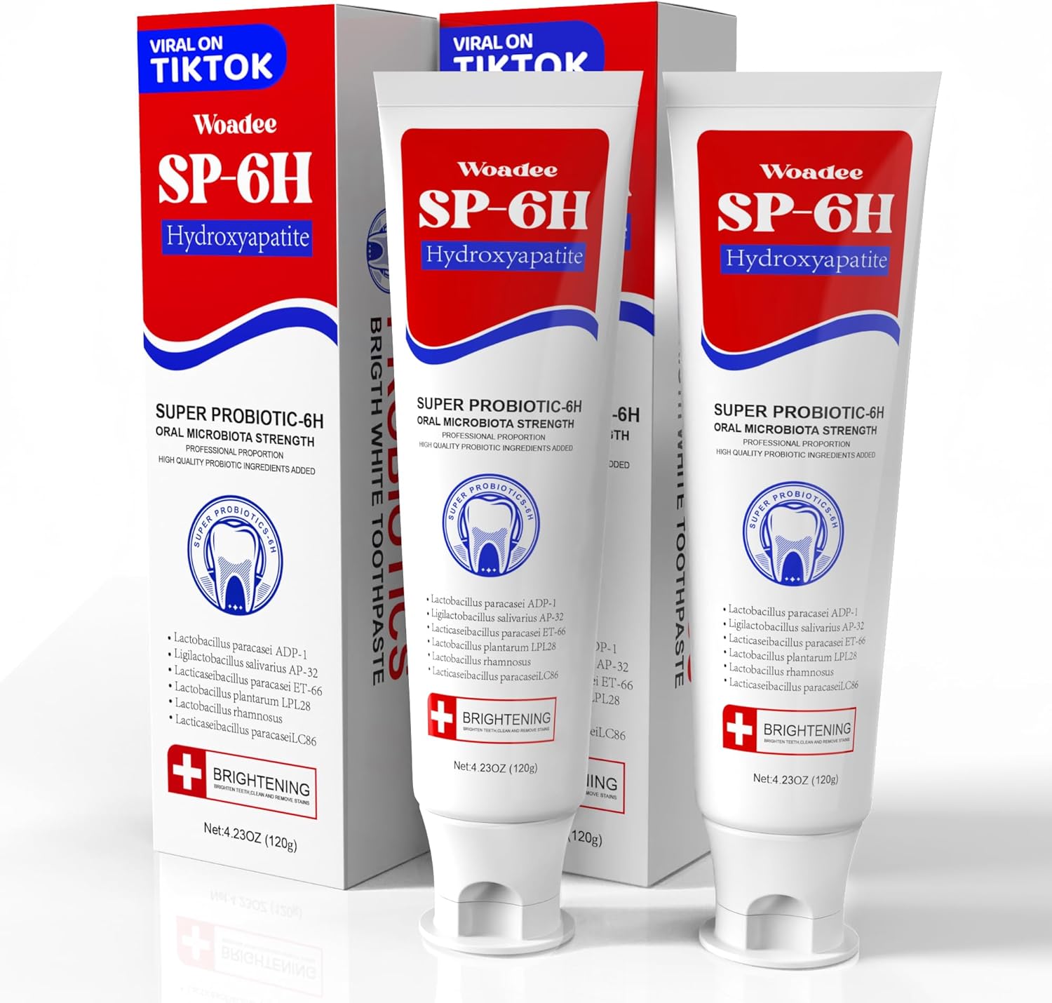 Woadee SP-6 Hydroxyapatite Toothpaste, SP-6 Probiotic Whitening Toothpaste,6 Probiotics+Hydroxyapatite Formula for Teeth Whitening, Strengthening and Enamel Protection,Mint Flavor, Fresh Breath(2)