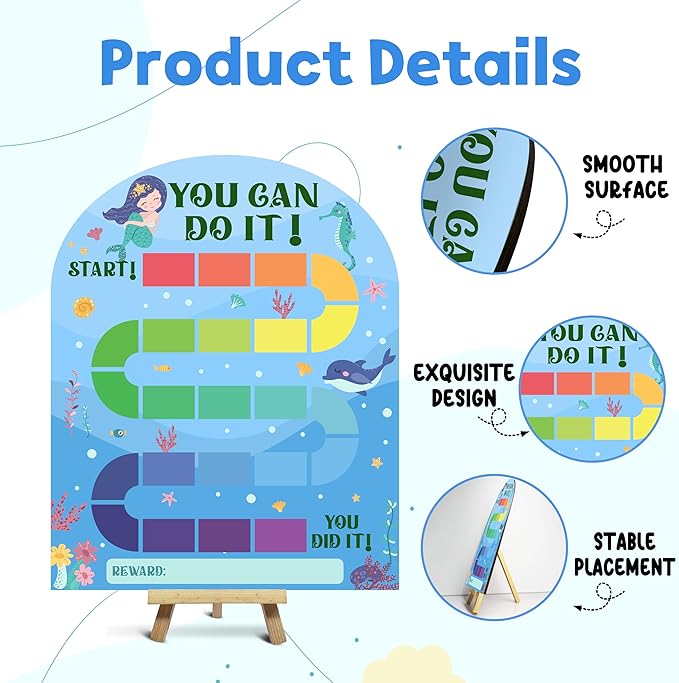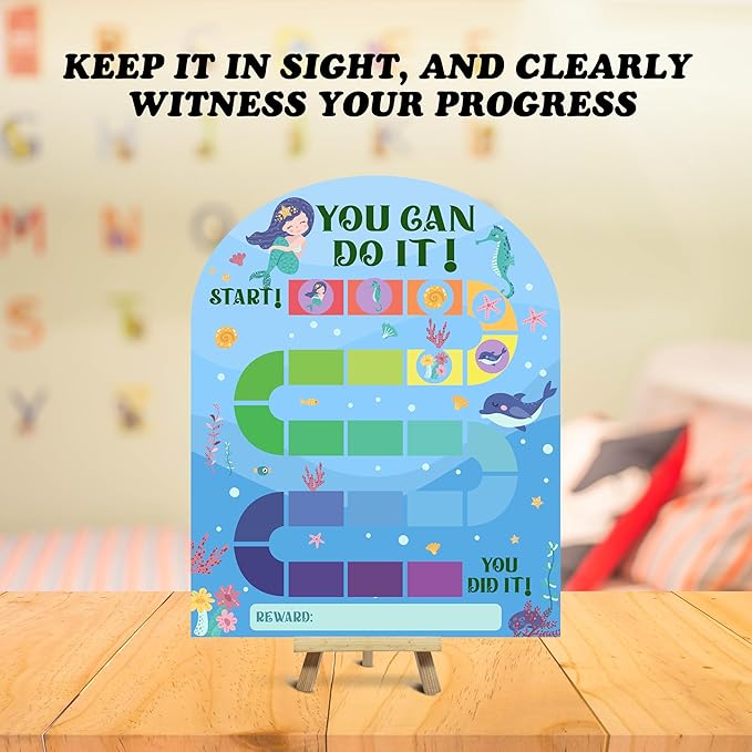 Mermaid Reward Chart, Behavior Chart for Kids at Home, Wooden Incentive Chart Signboard with 24 Tokens, Under The Sea Themed Sticker Charts Classroom Essentials -04