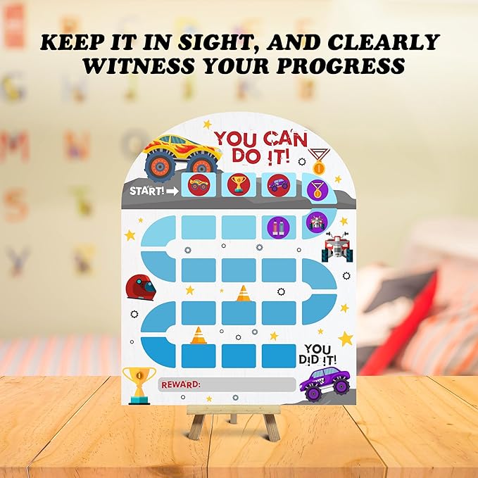 Truck Reward Chart, Behavior Chart for Kids at Home, Wooden Incentive Chart Signboard with 24 Tokens, Colorful Sticker Charts Classroom Essentials -08