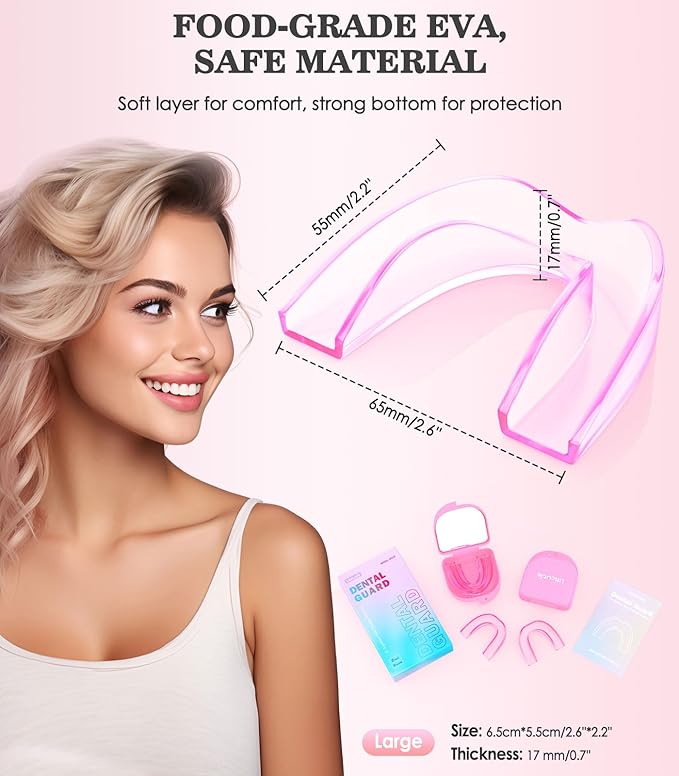 - 【GRIND NO MORE】- The mouthguards for grinding of teeth helps with teeth grinding and clenching teeth. The teeth grinding mouth guard for sleep helps relax jaw muscles, and helps prevent teeth from biting down, grinding, clenching and alleviates other potential dental discomfort.