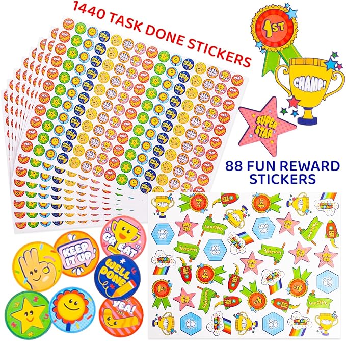 - Magnetic Reward Chart for Kids. Includes 26 reusable sheets, 1528 stickers, and 4 designs. Use one chore chart for kids multiple kids or assign one per child - perfect for siblings and shared routines.