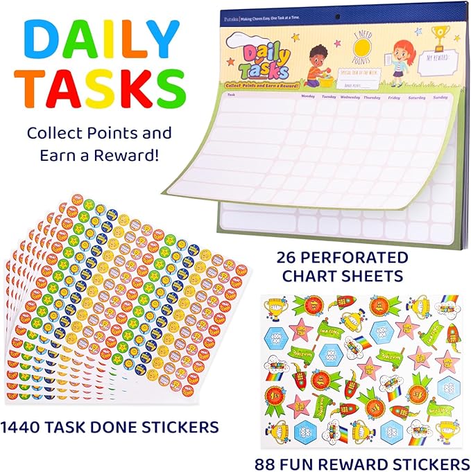 PUTSKA Behavior Reward Chart for Kids – Includes 26 Chore Charts & 1528 Stickers – Magnetic Chore Chart for Multiple Kids at Home to Build Responsibility & Positive Habits (Reward Chart)