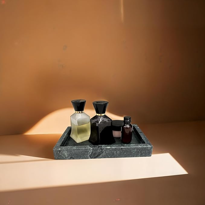 Natural Green Marble Tray for Bathroom | Kitchen | Vanity | Desktop, Stone Organizer for Coffee Table, Dresser, Nightstand, Candles, Soap, Towel, Plant, Jewelry (10" x 6"), Rectangular