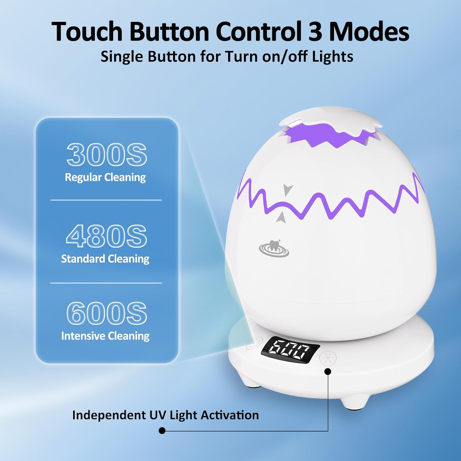 - 【Easy to Use】The ultrasonic dental cleaner offers 3 cleaning modes (300/480/600s) to meet your different needs. It is simple to operate: add cold water, flick the switch to select your preferred mode, and start cleaning your dentures. The built-in LCD screen clearly displays the remaining cleaning time, and the cooling fan at the bottom prevents overheating and maintains good heat dissipation.