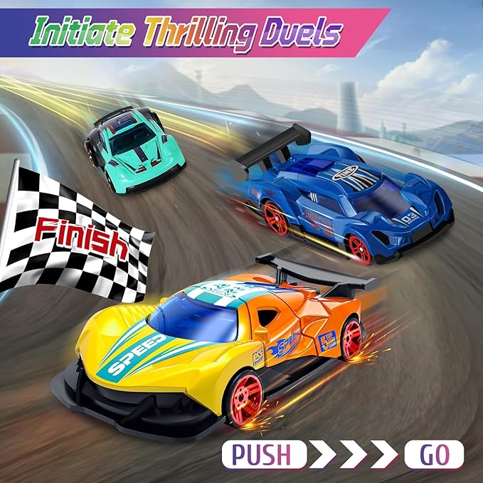 - Magical Color Changing Cars: Race on the track then dip these car toys into warm or icy water to change color with water over and over! Race again as a different decos car! This water toys offers an exciting and versatile experience for kids. Whether used as bath toys or pool toys, the color shift lasts for a long time, ensuring extended fun. Perfect for a summer toy experience, especially for kids car driving games whether they are indoors or outdoors